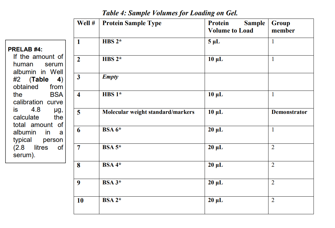 Well # Table 4: Sample Volumes for Loading on Gel. | Chegg.com