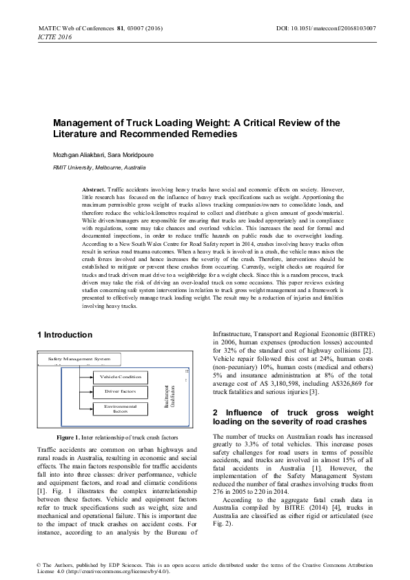 (PDF) Management of Truck Loading Weight: A Critical Review of the ...
