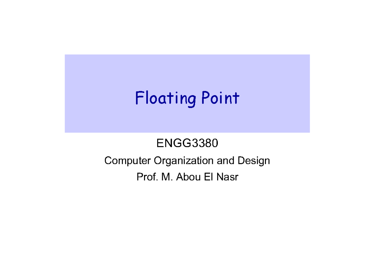 W26 ENGG3380 Floating Points: 754 Standard Overview and Notes - Studocu