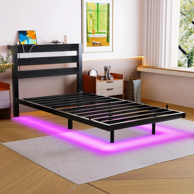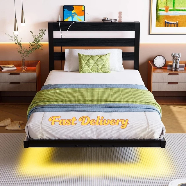 3FT SINGLE FLOATING Bed Frame with LED Lights USB Charging Station😍 £ ...
