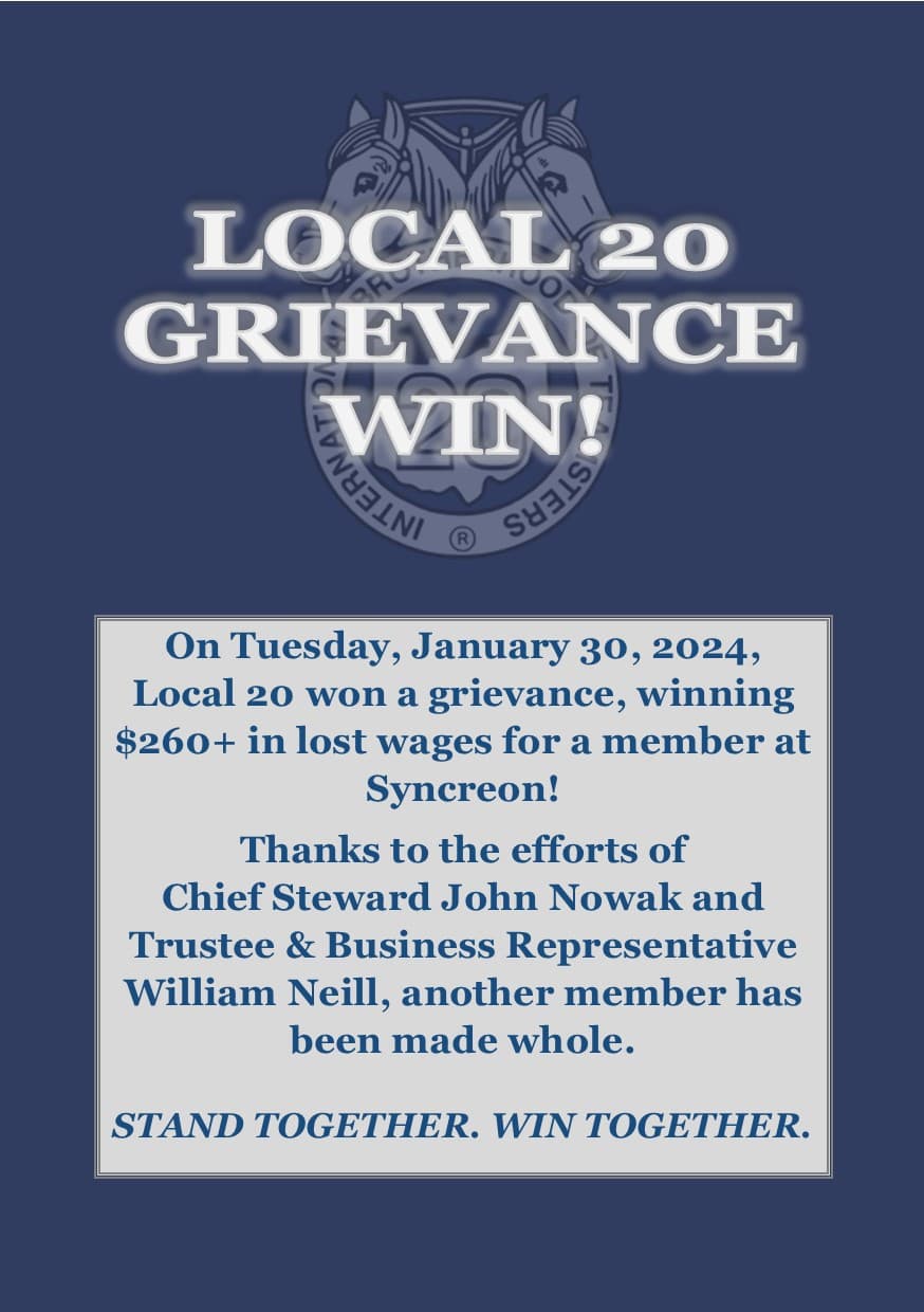 Another Local 20 Grievance Win!