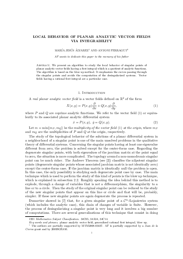 (PDF) Local behavior of planar analytic vector fields via integrability