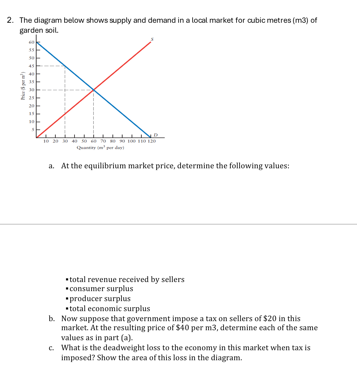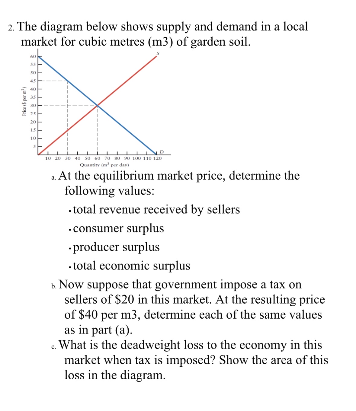 Solved The diagram below shows supply and demand in a local | Chegg.com