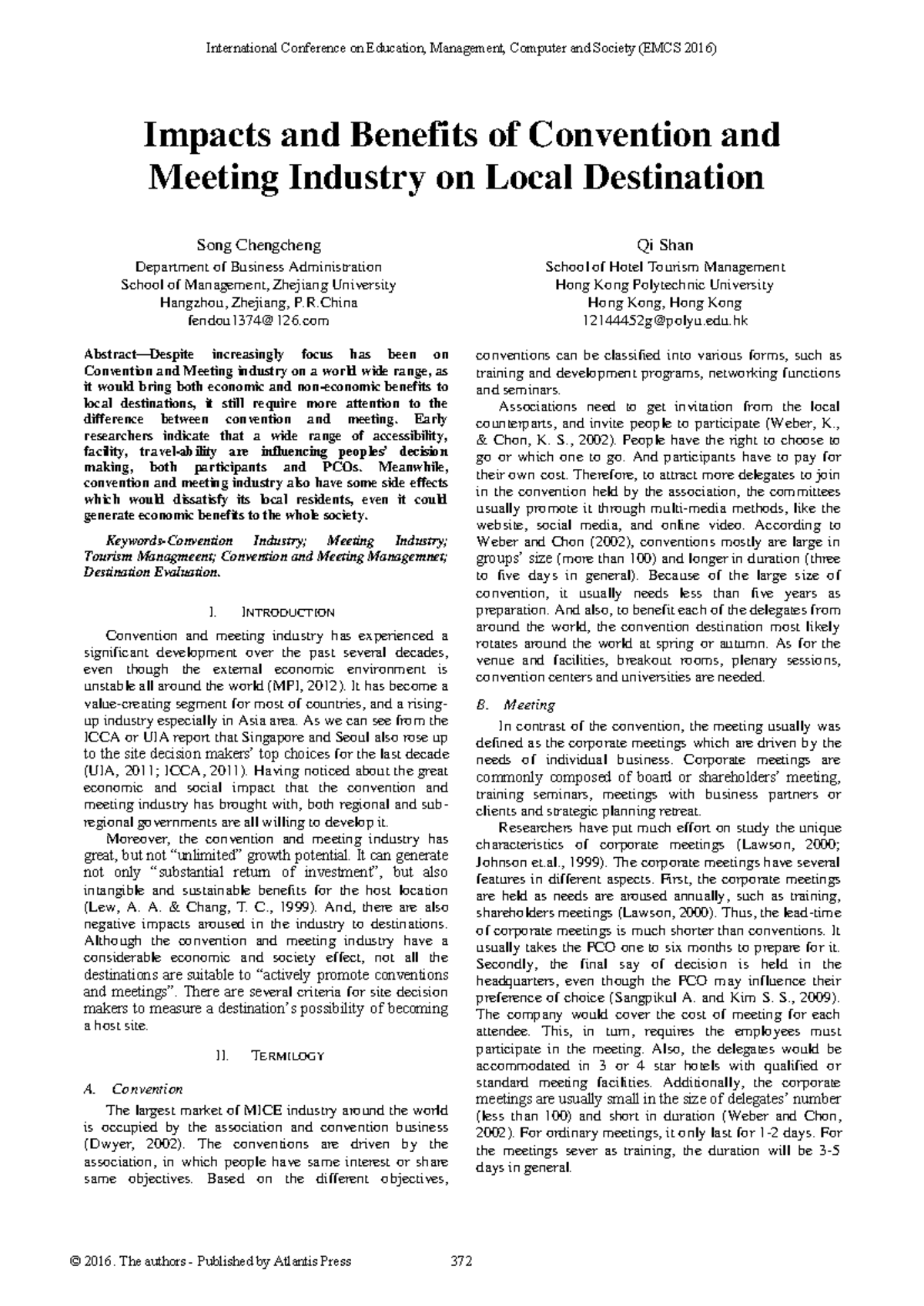 Impacts of Convention and Meeting Industry on Local Destinations: EMCS ...