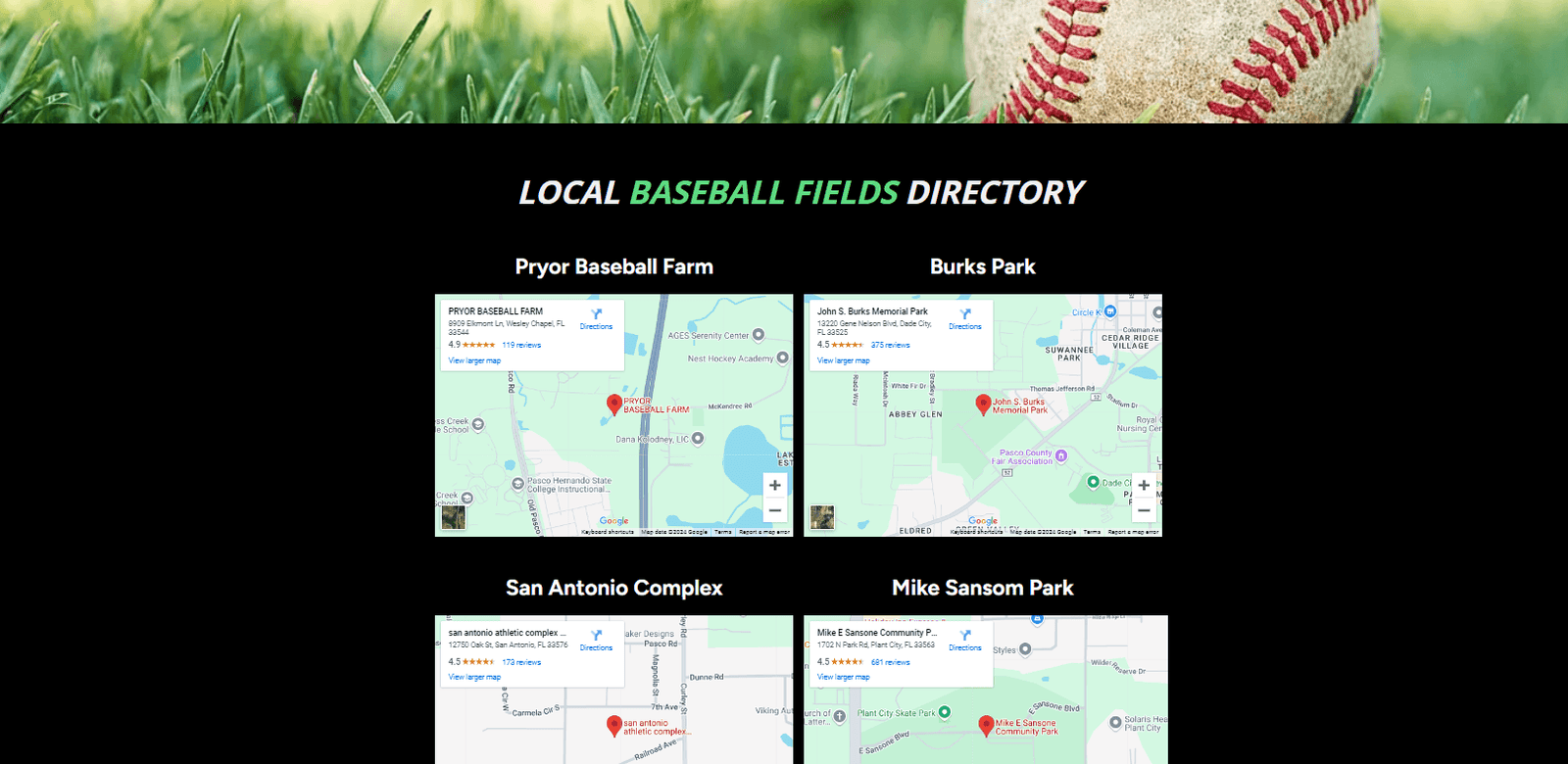 Local Baseball Fields Directory West Central Florida - Pryor Baseball Farm
