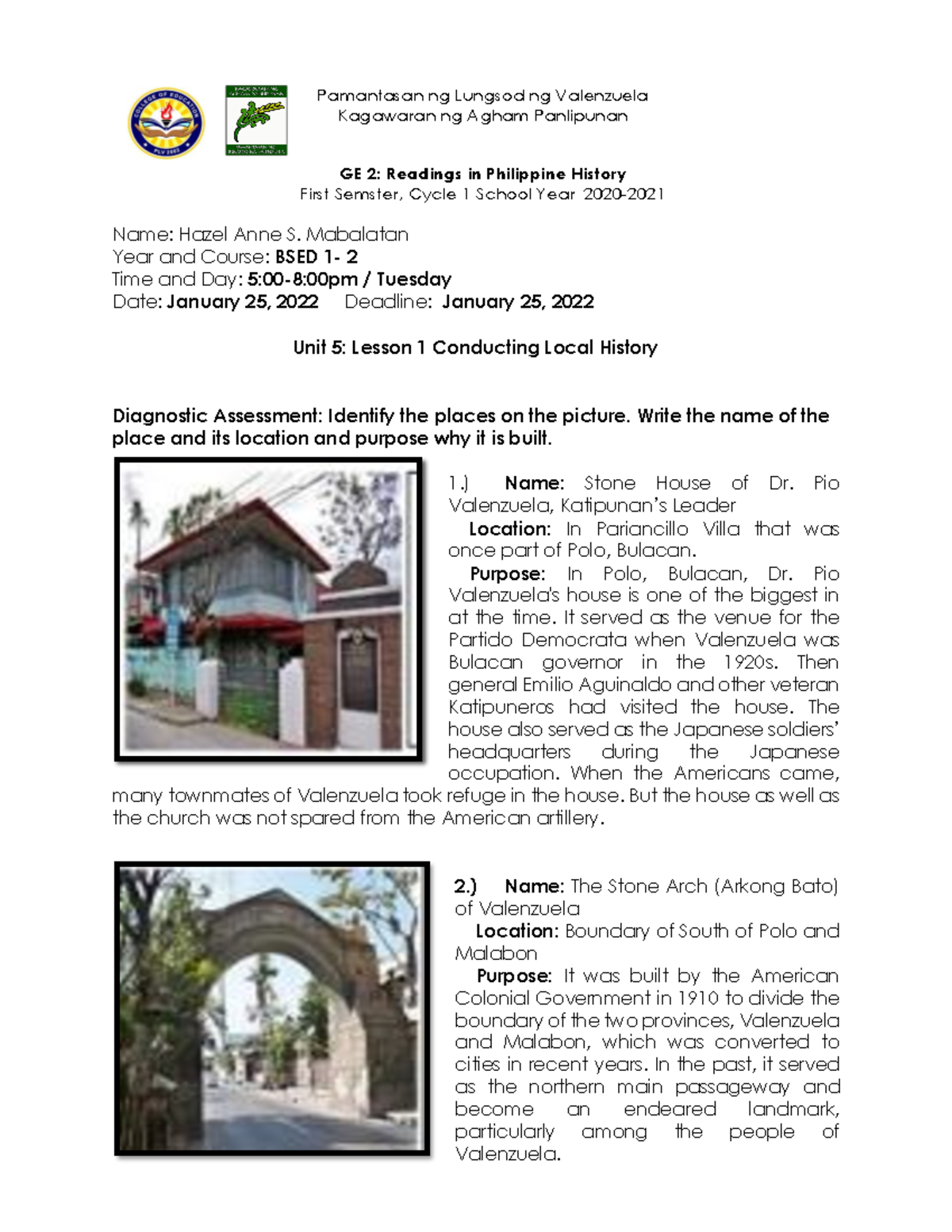 Interest IN Local History - Philippine History and Culture - UPHSD ...