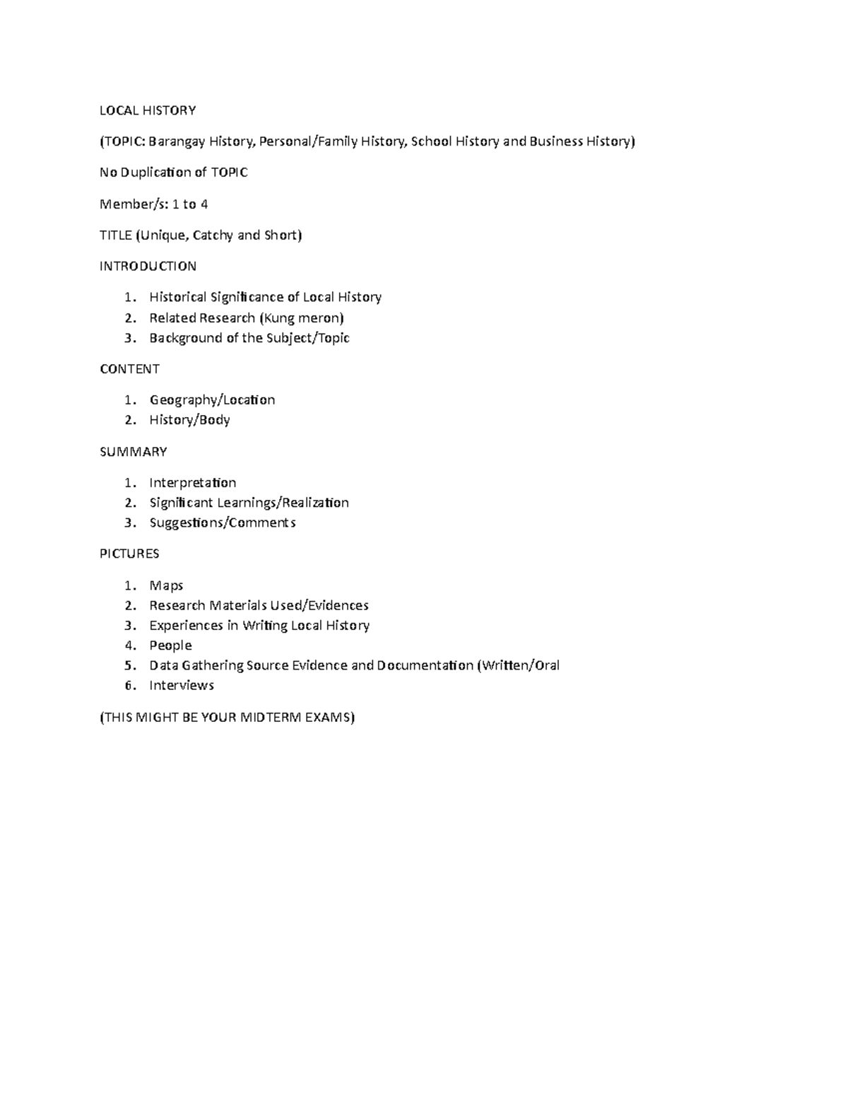 THE Things Needed TO BE ABLE TO Create A Local History Paper - MAKING ...