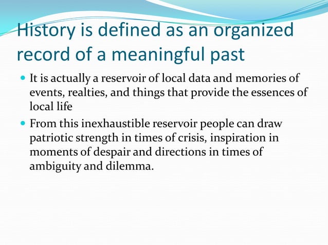 Local History - A METHODOLOGY OF LOCAL HISTORY Digna Balangue Apilado ...