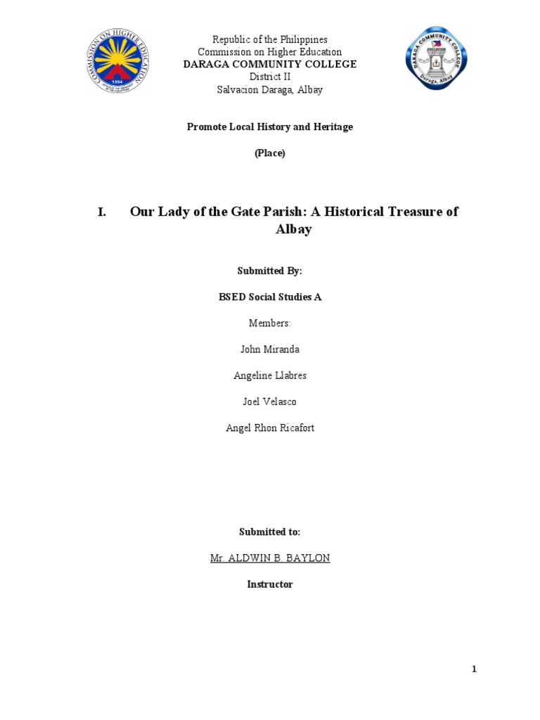 Local History - Lesson - Lesson Proper for Week 17 APPRECIATION OF ...