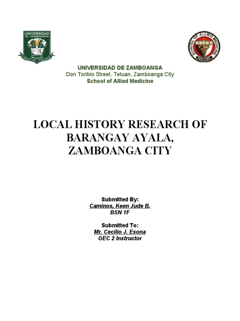 Local History Research of Barangay Ayala in Zambo City (Caminos, Keen ...