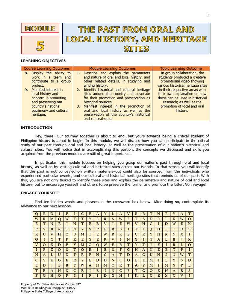 Module V (The Past From Oral and Local History, and Heritage Sites ...