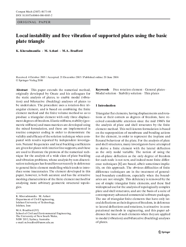 (PDF) Local Instability and Free Vibration of Supported Plates Using ...