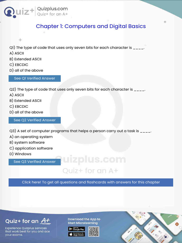The Type of Code That Uses Only Seven Bits for Each Character Is | PDF ...