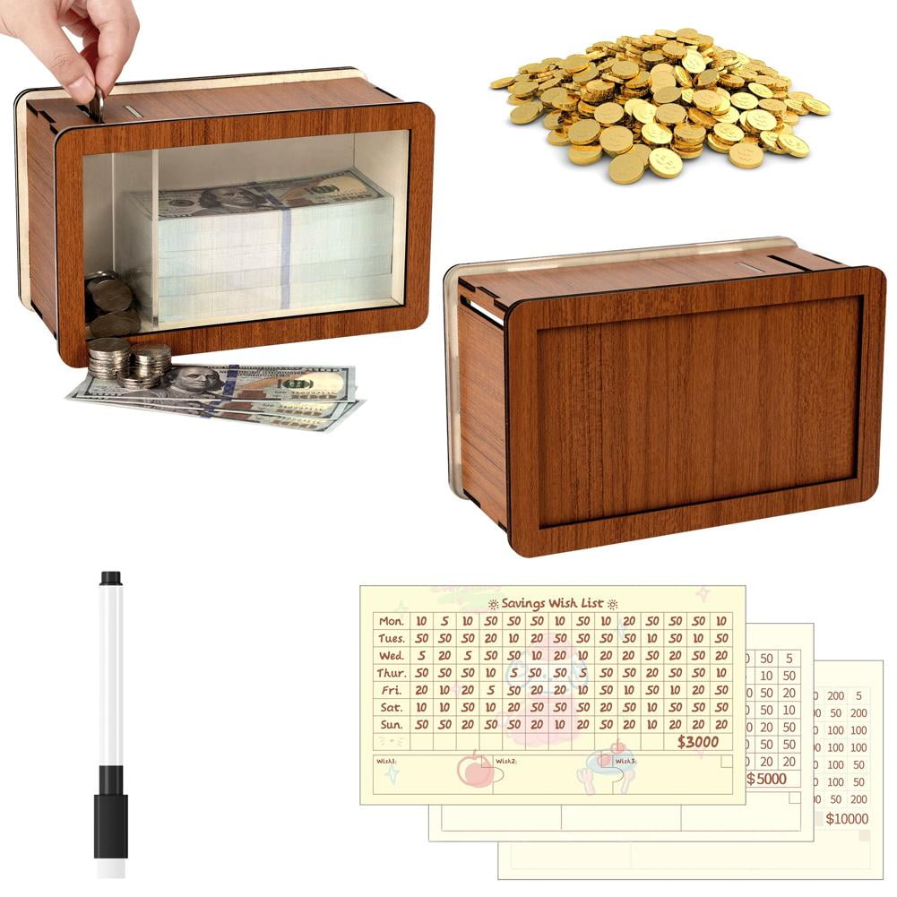 Amazon.com: Wooden Money Box with Savings Target and Numbers, Reusable ...