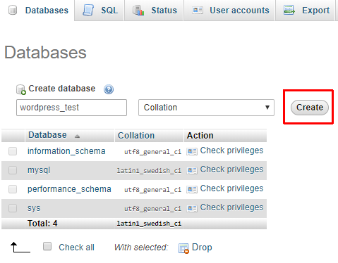 create database in mysql wamp server