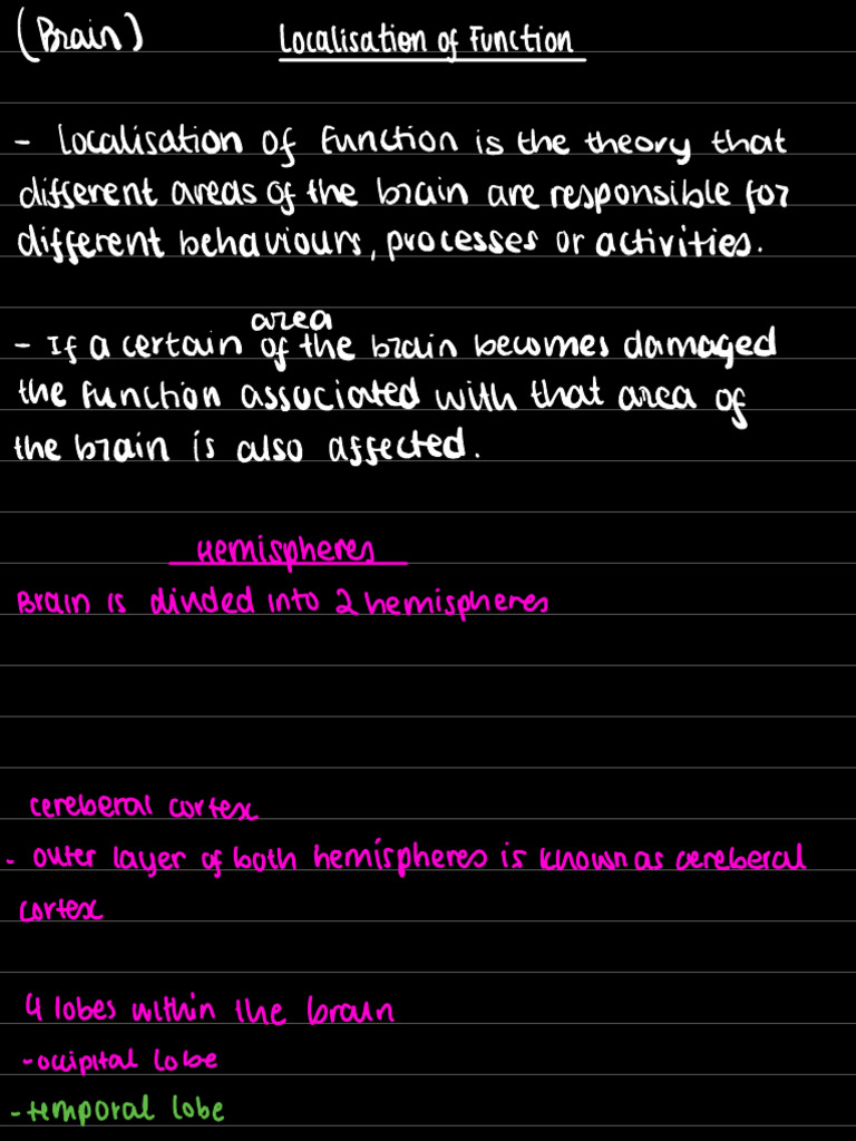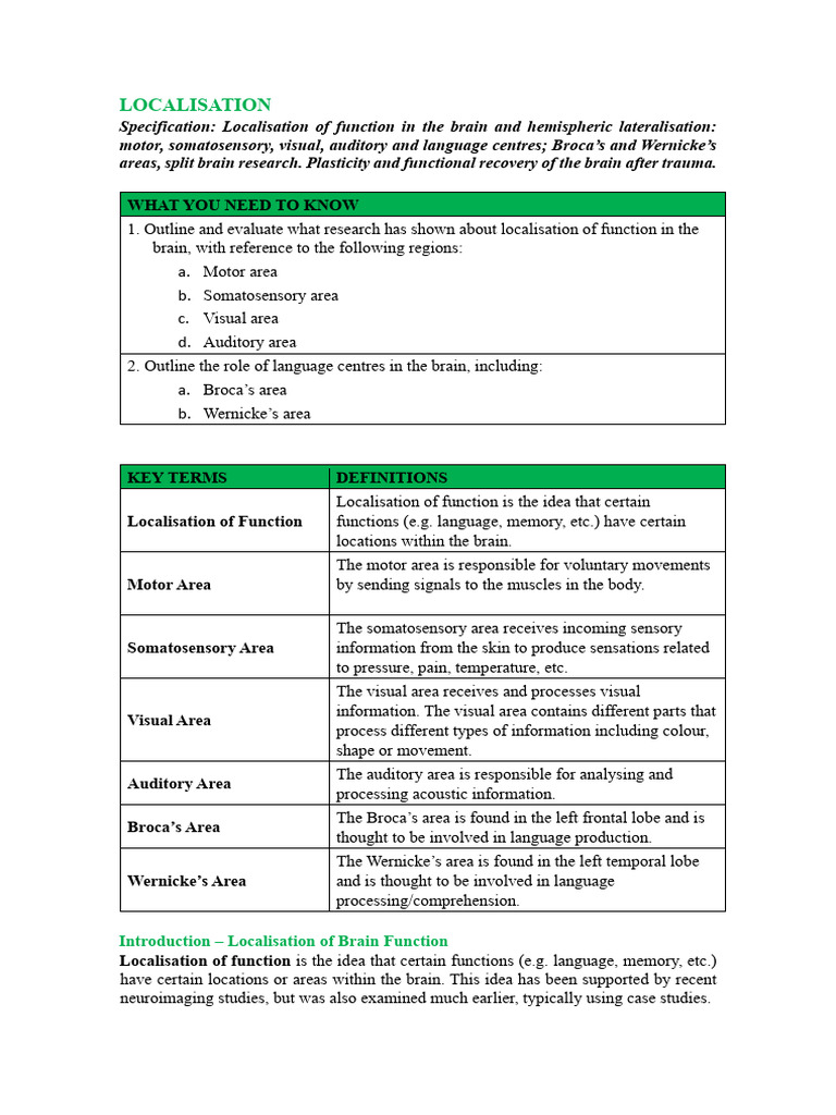 Localisation of Function & Lateralisation in Brain Processes - Studocu