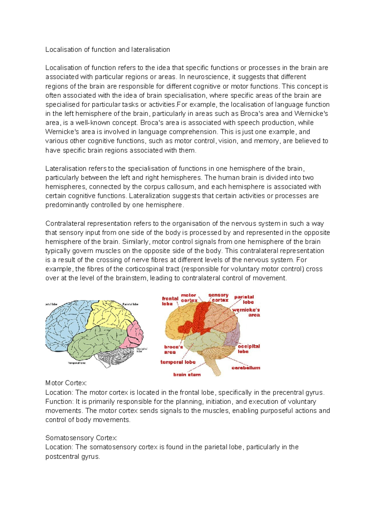 Localisation of function- areas of the brain.docx - Localisation of ...