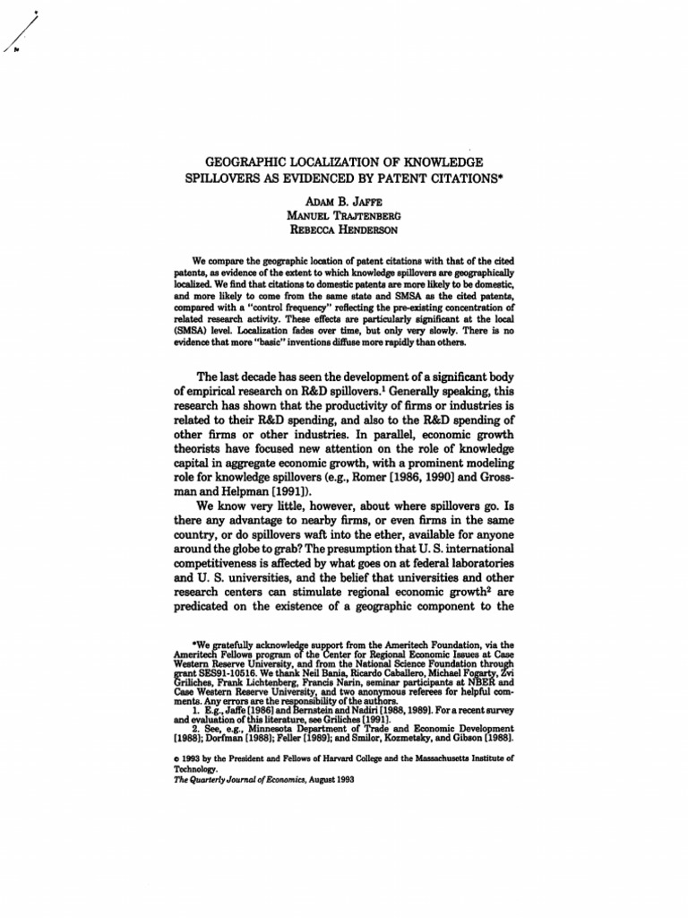 Geographic Localization of Knowledge Spillovers | PDF