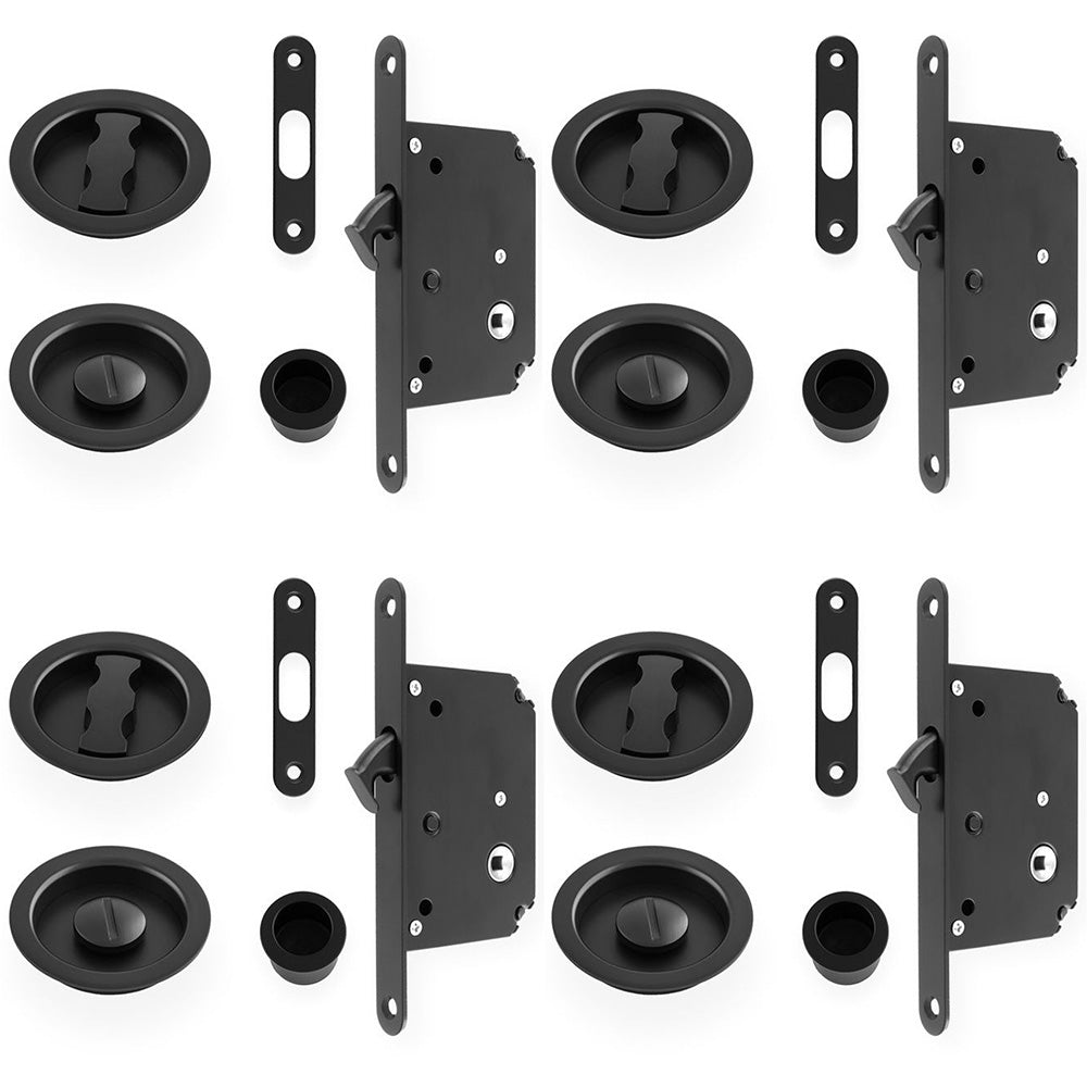 4 PACK - Sliding Pocket Door Lock & Latch Set - Matt Black Rounded For ...