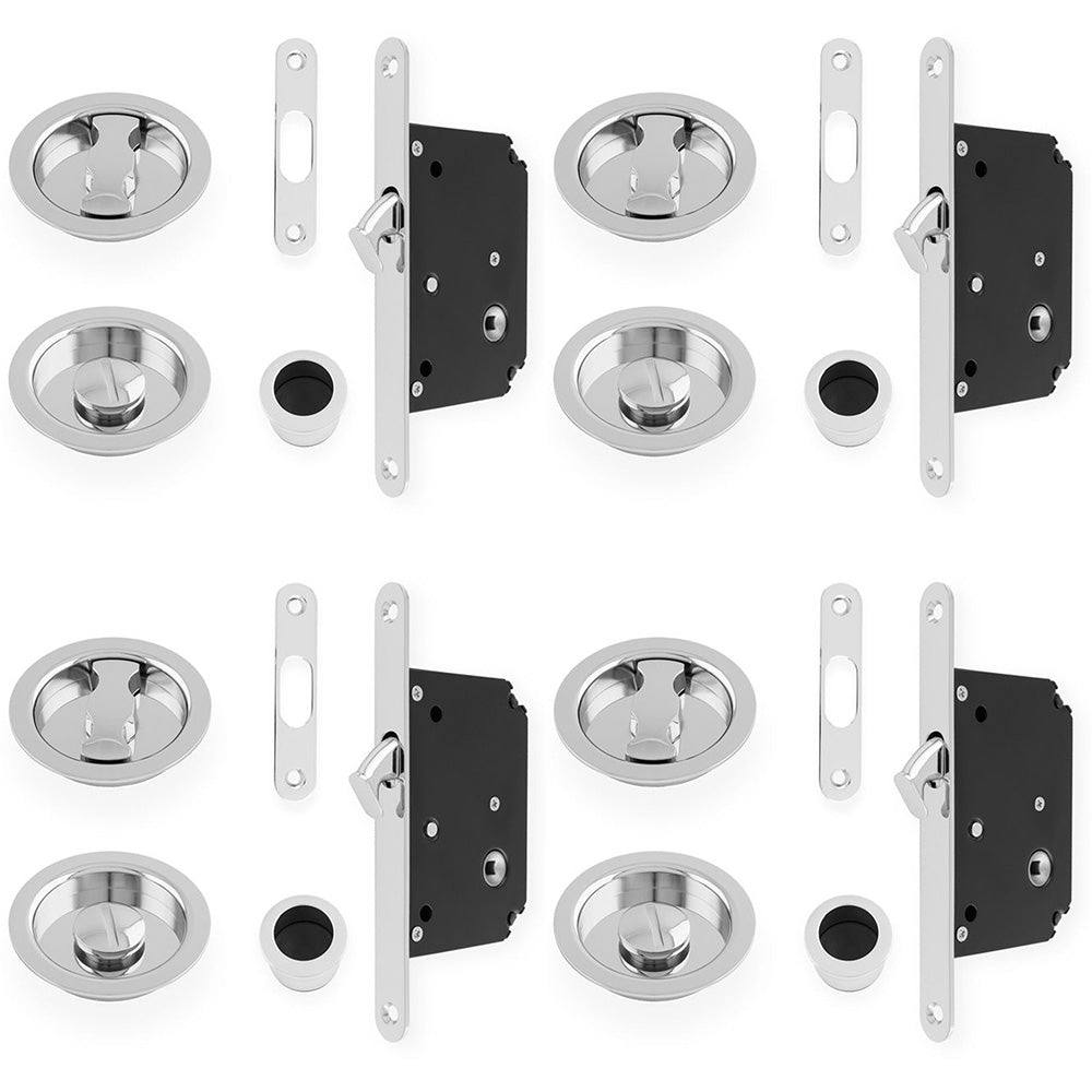 4 PACK - Sliding Pocket Door Lock & Latch Set - Polished Chrome Round ...