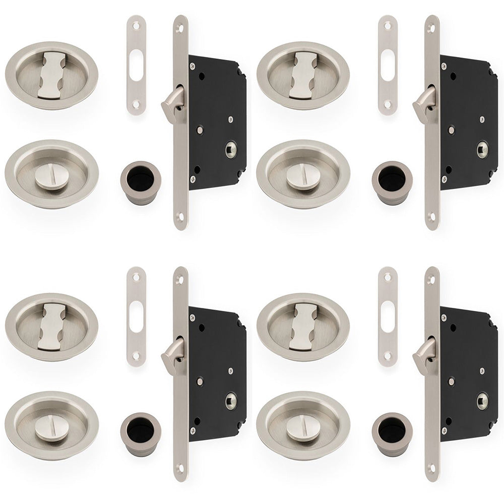 4 PACK - Sliding Pocket Door Lock & Latch Set - Satin Nickel Rounded F ...