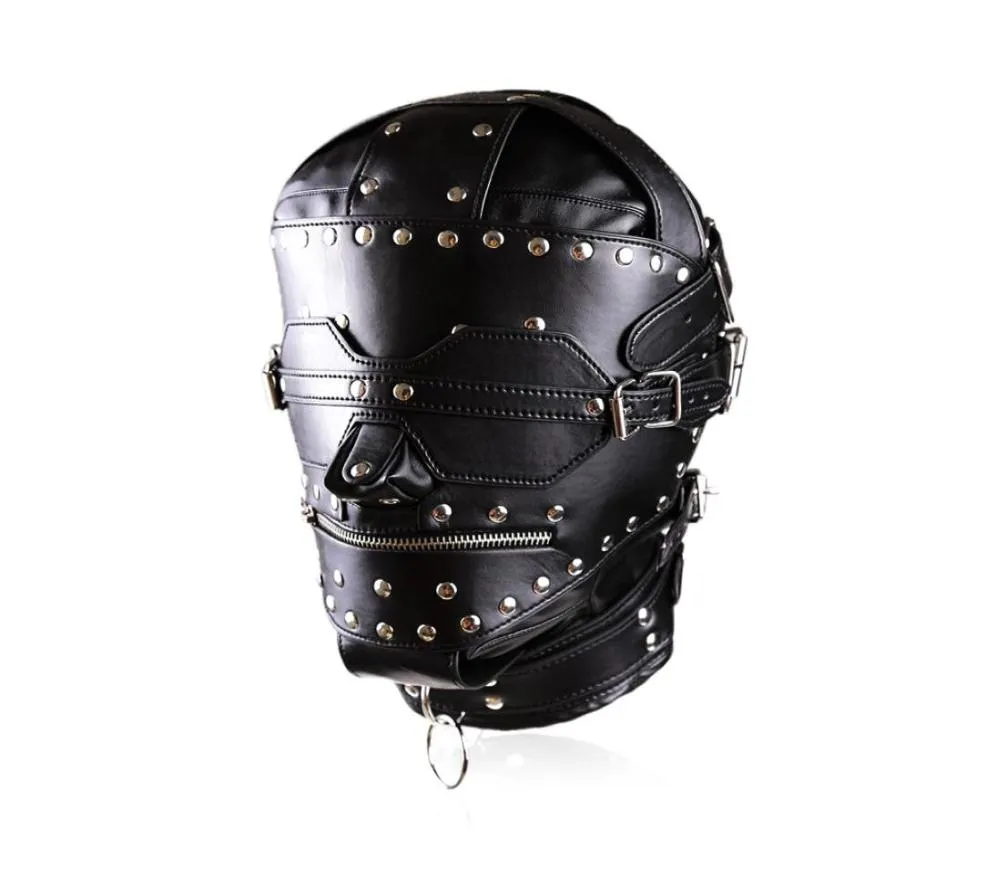 Sensory Deprivation Lockable Mask BDSM Mouth Head Hood Harness Bondage ...