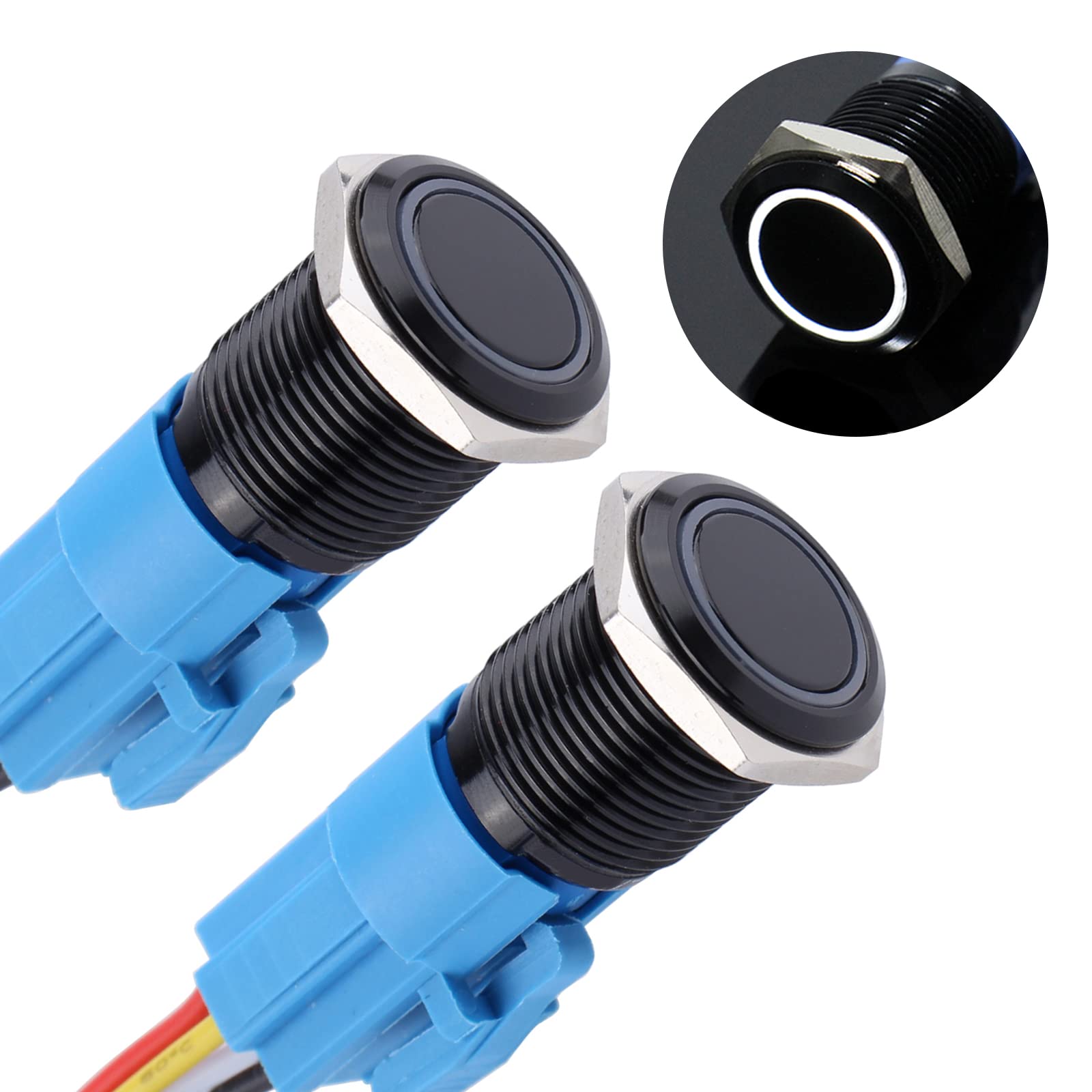 AlwaysH 2 Pieces 16 mm Self-Locking Push Button Switch, 12V/24V 5A IP65 ...