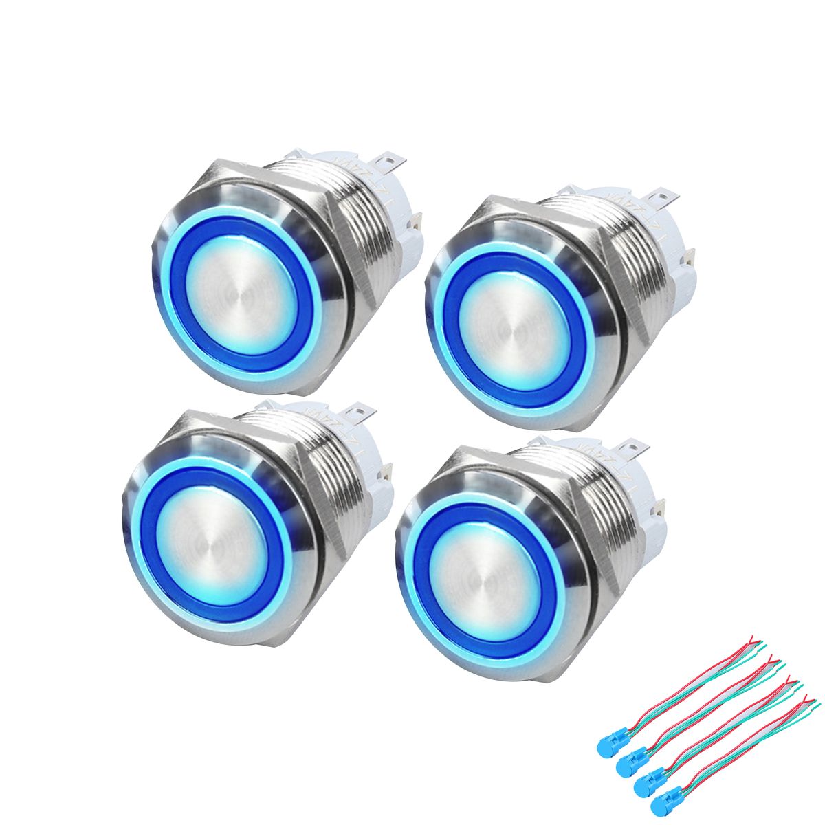 4 Pieces 19mm Stainless Steel Self-Locking Push Button Switch with LED ...