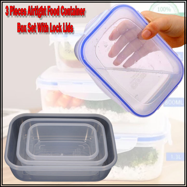 Lunch Box Tupperware 3 Pieces Airtight Food Container Box Set With Lock ...