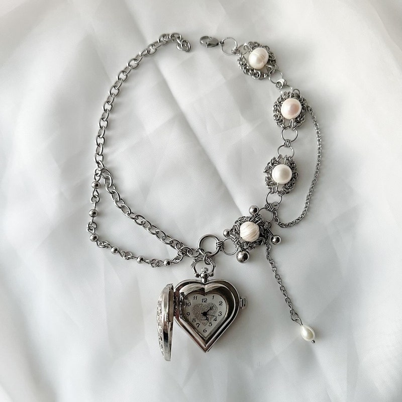 Pocket watch | Heart locket, Locket design, Clock necklace