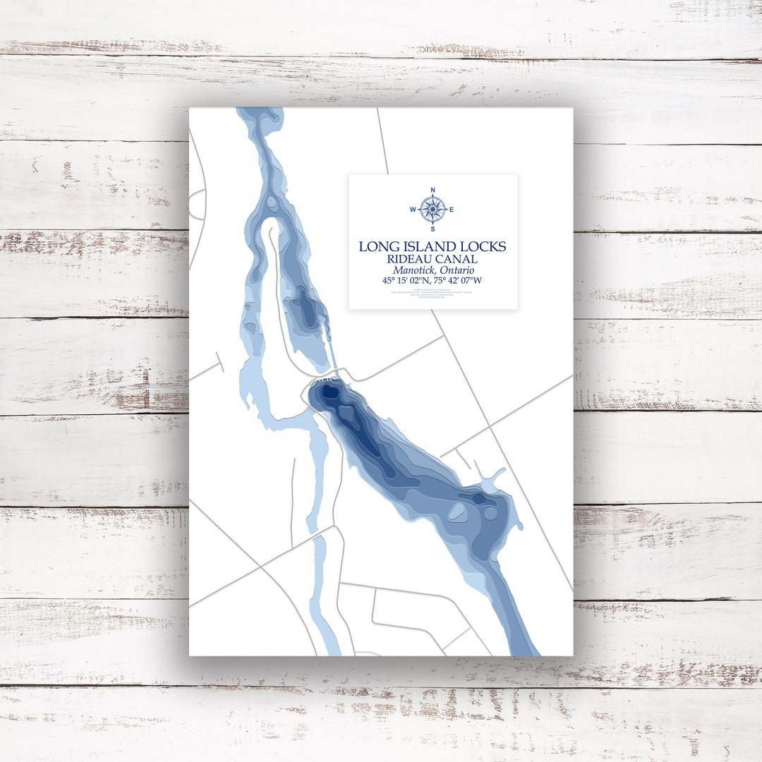 Long Island Locks Rideau Canal Bathymetric Map Print 12x18 to 28x40 ...