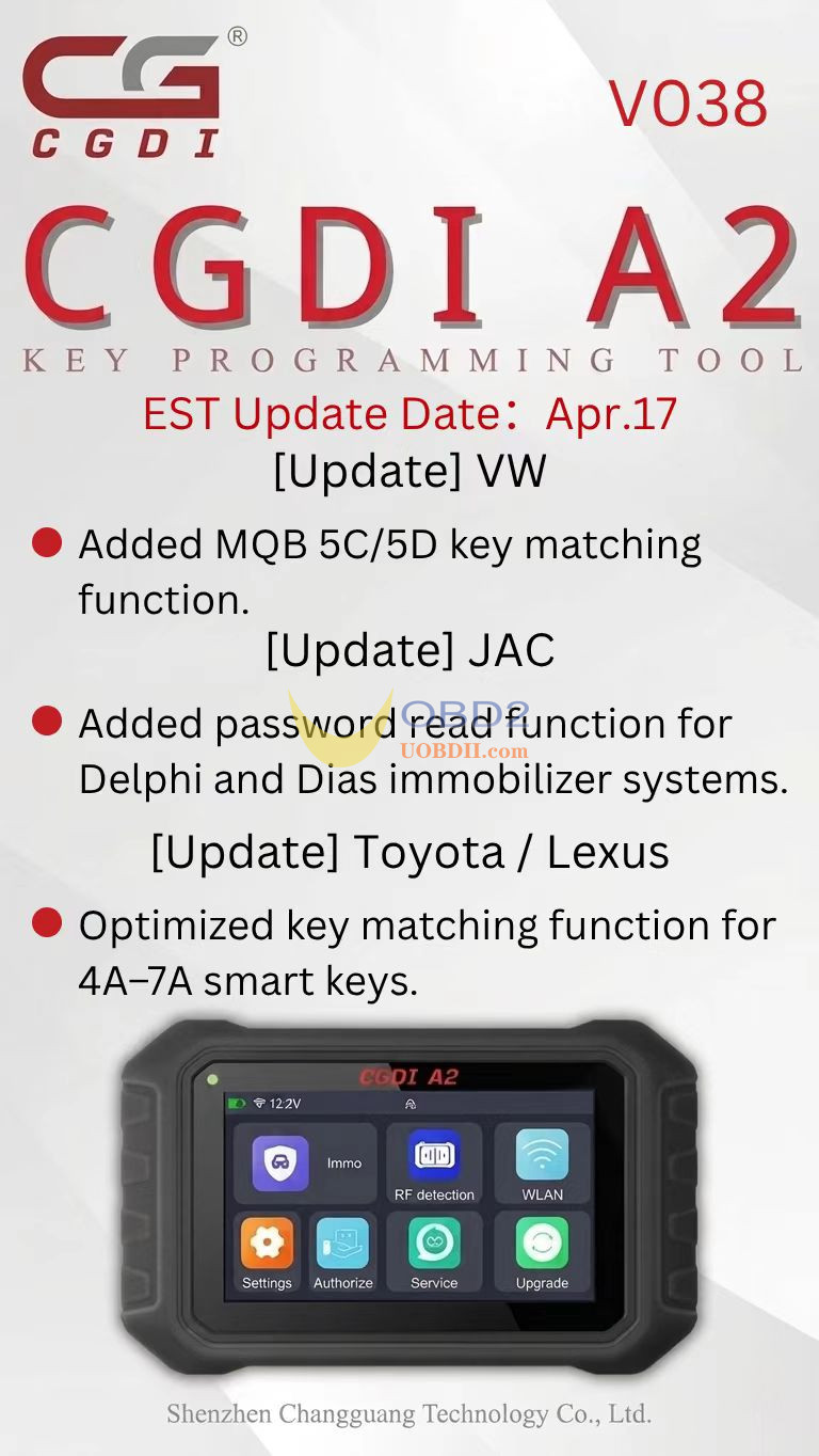 CGDI A2 V038 Update: added MQB 5C / 5D key matching function – UOBDII ...