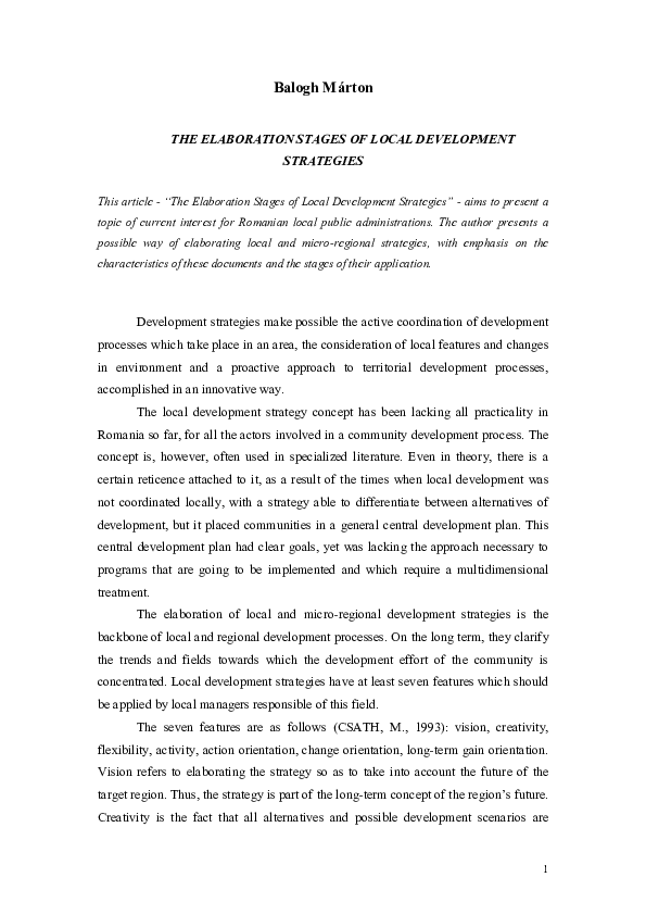 (PDF) The Elaboration Stages of Local Development Strategies