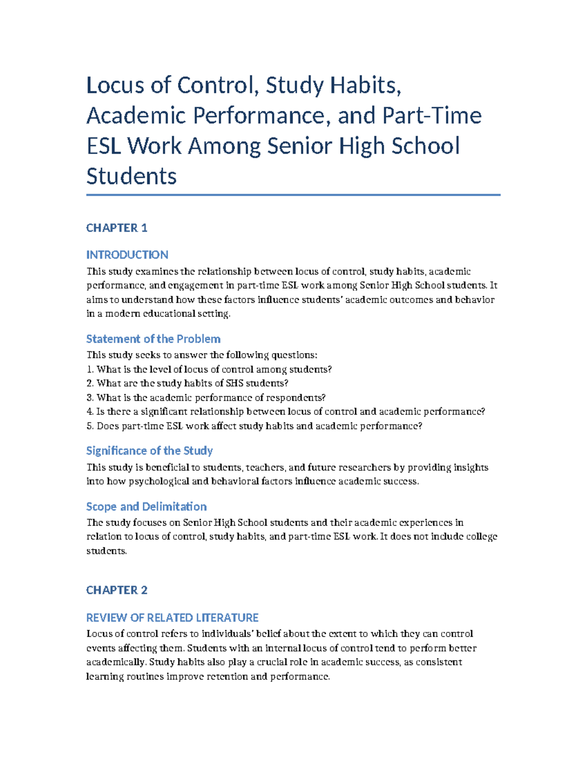 SHS Research Thesis: Locus of Control & Academic Performance Analysis ...