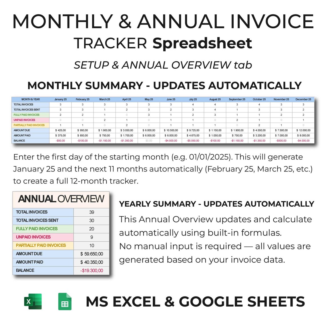 Invoice & Payment Tracker Spreadsheet, Excel Invoice Tracker Template ...