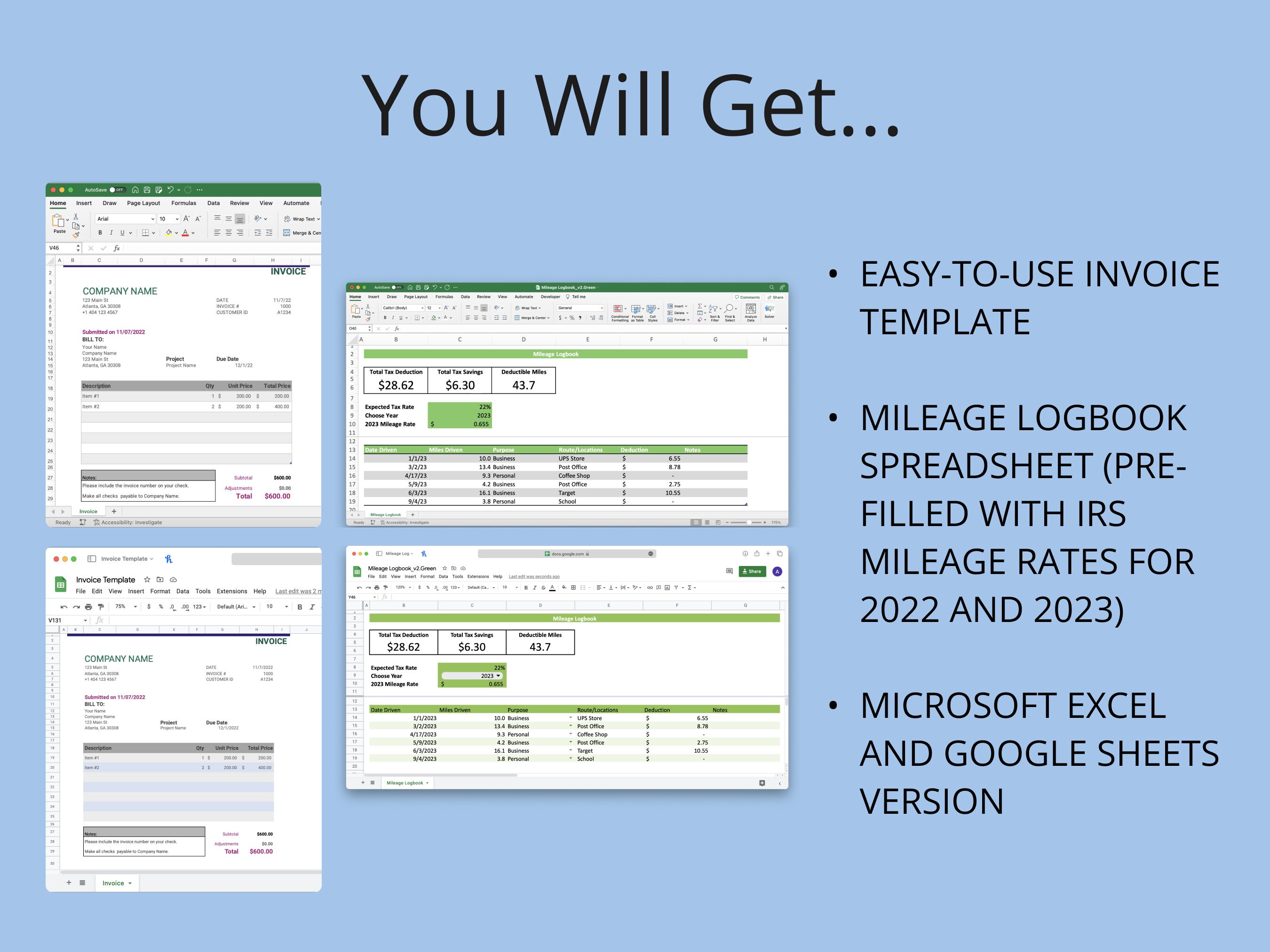 Mileage Log & Invoice Template for Microsoft Excel/google - Etsy