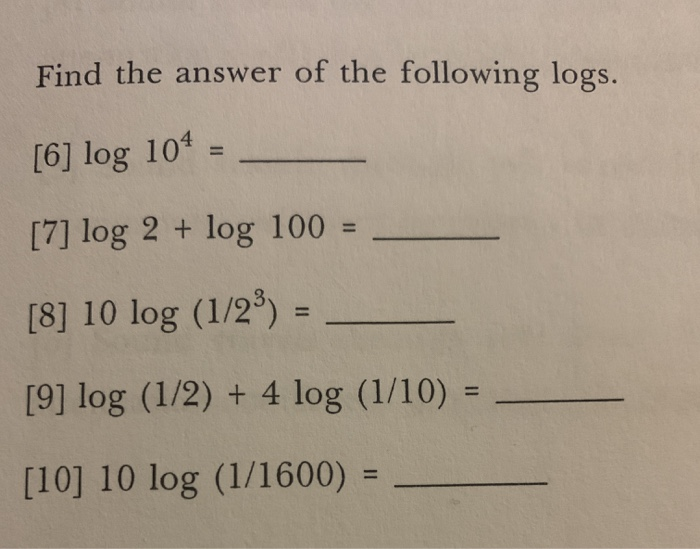 Solved Find the answer of the following logs. [6] log 104 = | Chegg.com