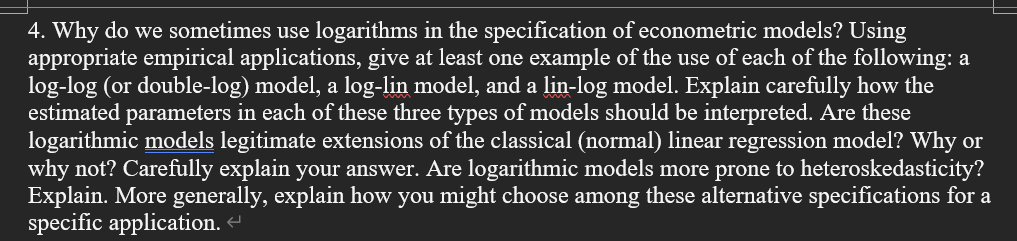 Solved 4. Why do we sometimes use logarithms in the | Chegg.com