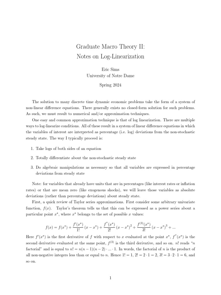 Notes Log Linearization sp24 | PDF | Derivative | Function (Mathematics)