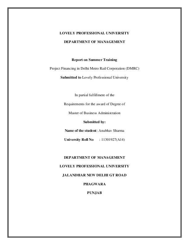 (PDF) LOVELY PROFESSIONAL UNIVERSITY DEPARTMENT OF MANAGEMENT Report on ...