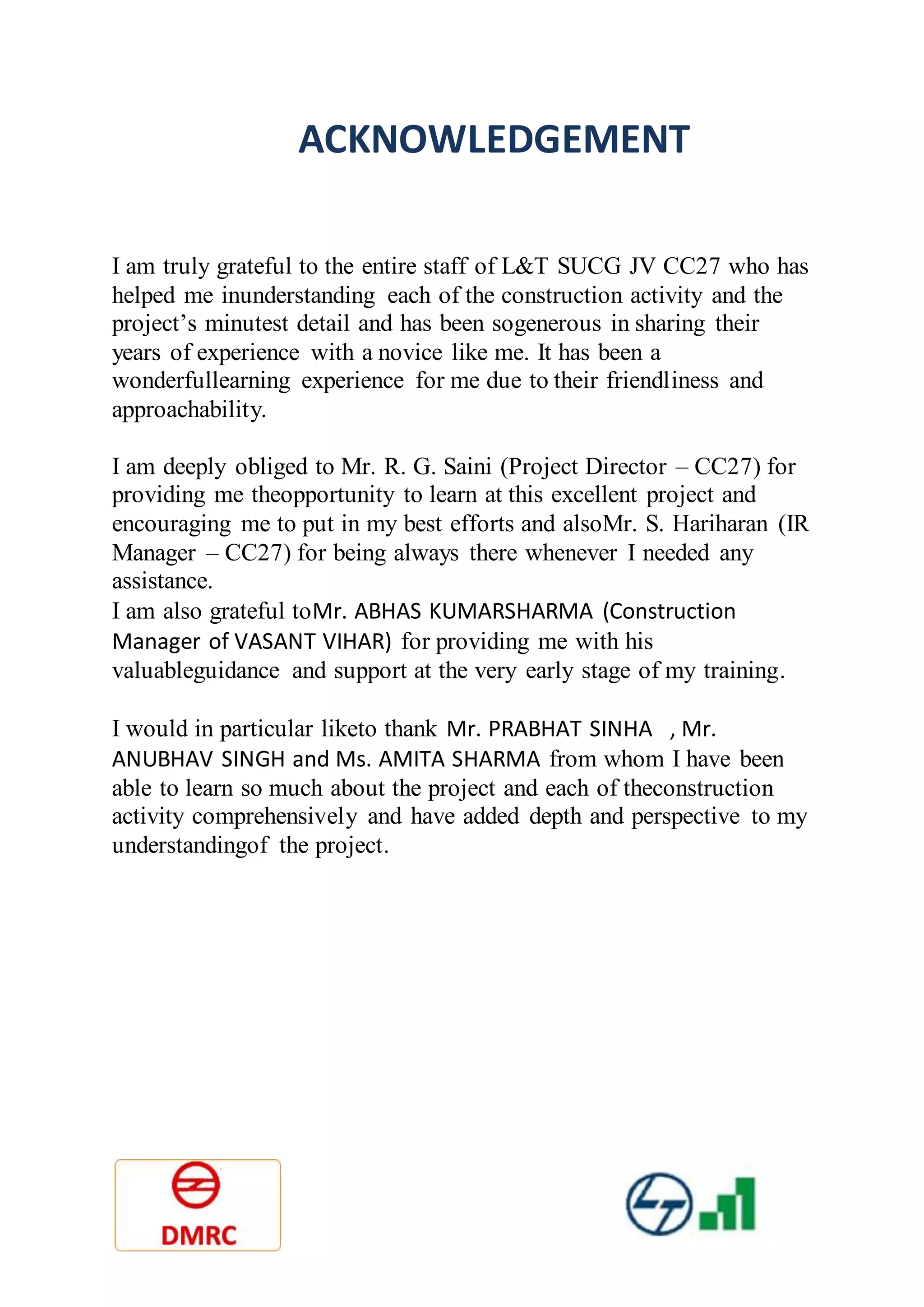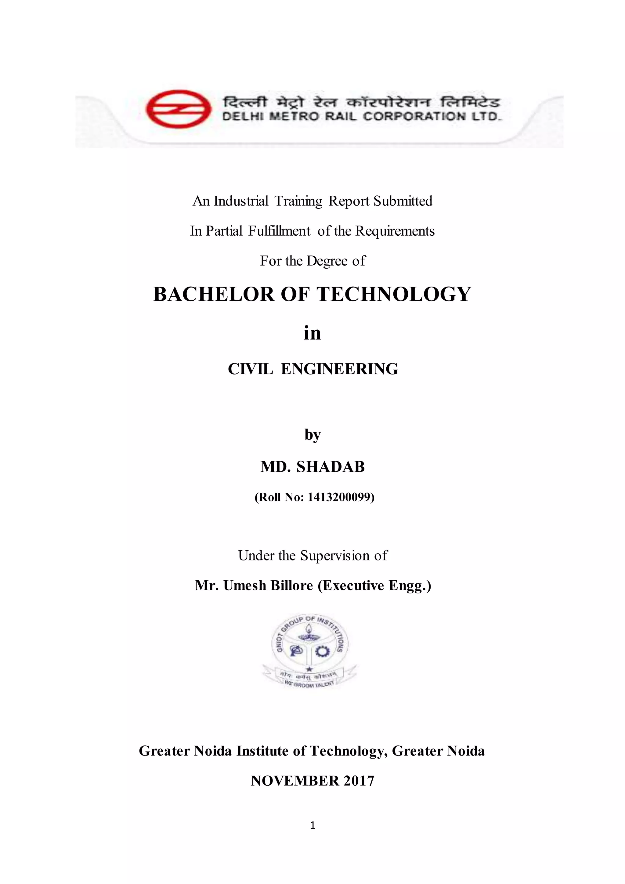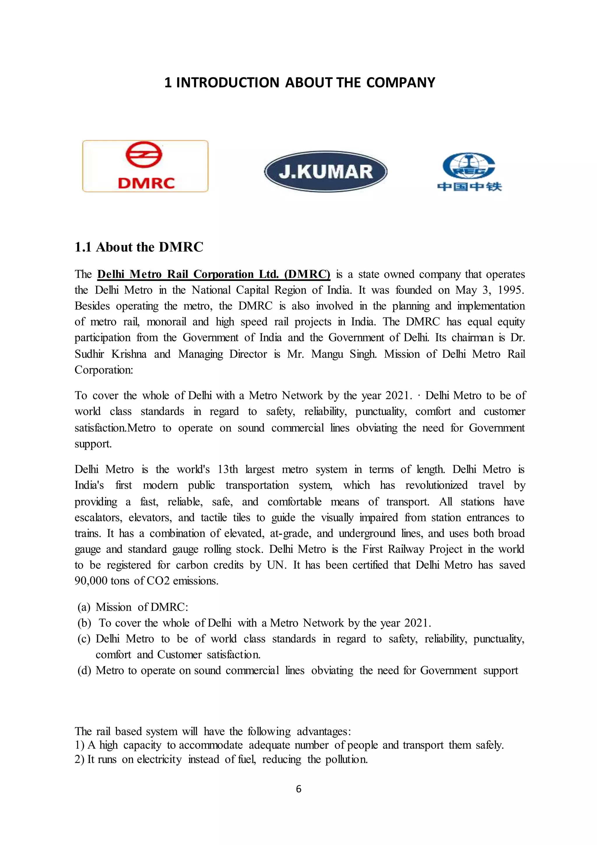 Internship Report - DMRC - DELHIMETRORAIL CORPORATION LTD. (A JOINT ...
