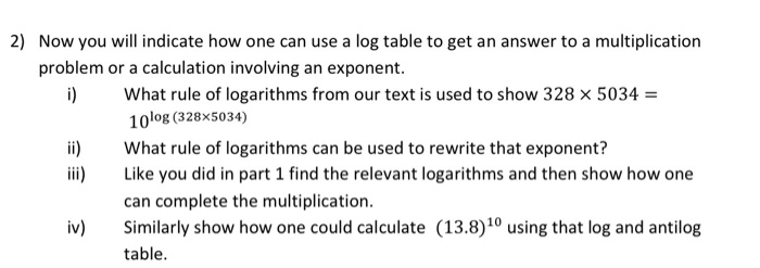 Solved 2) Now you will indicate how one can use a log table | Chegg.com