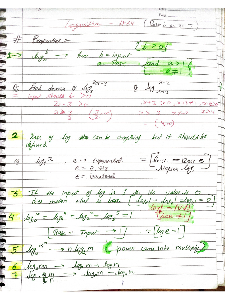 IIT JEE logarithm notes | Study notes Mathematics | Docsity