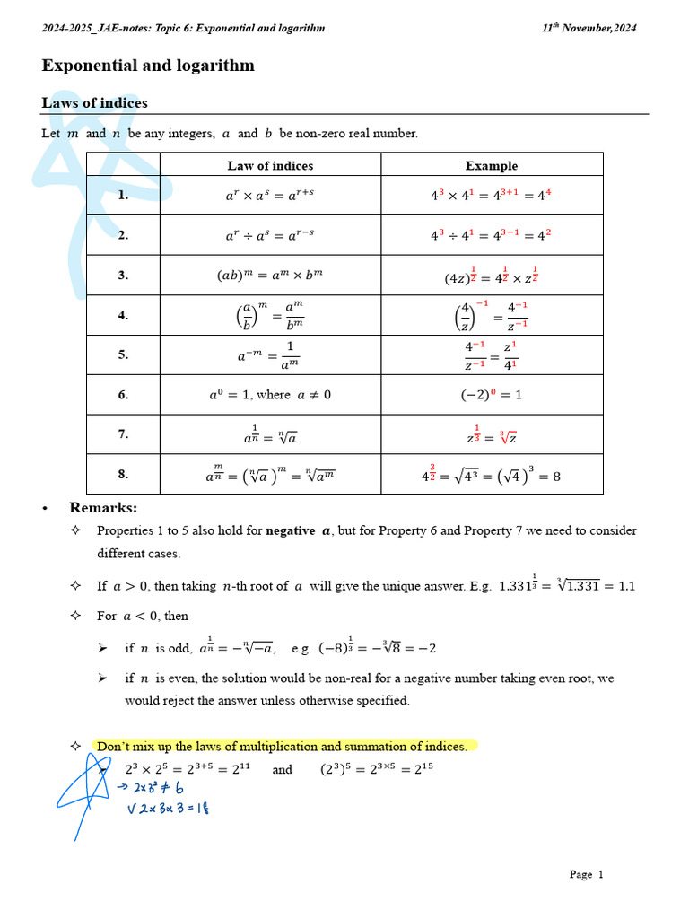 Exponential and Logarithm Note | PDF