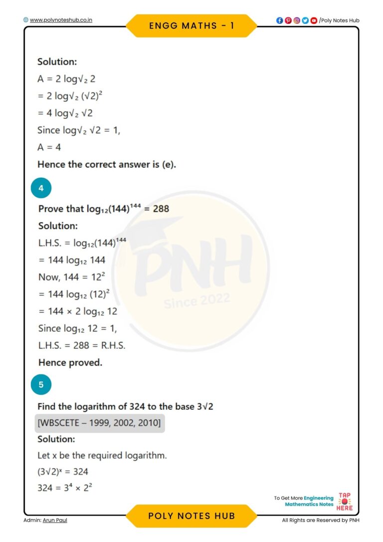 Logarithm.pdf - Engineering Mathematics - Notes - Teachmint