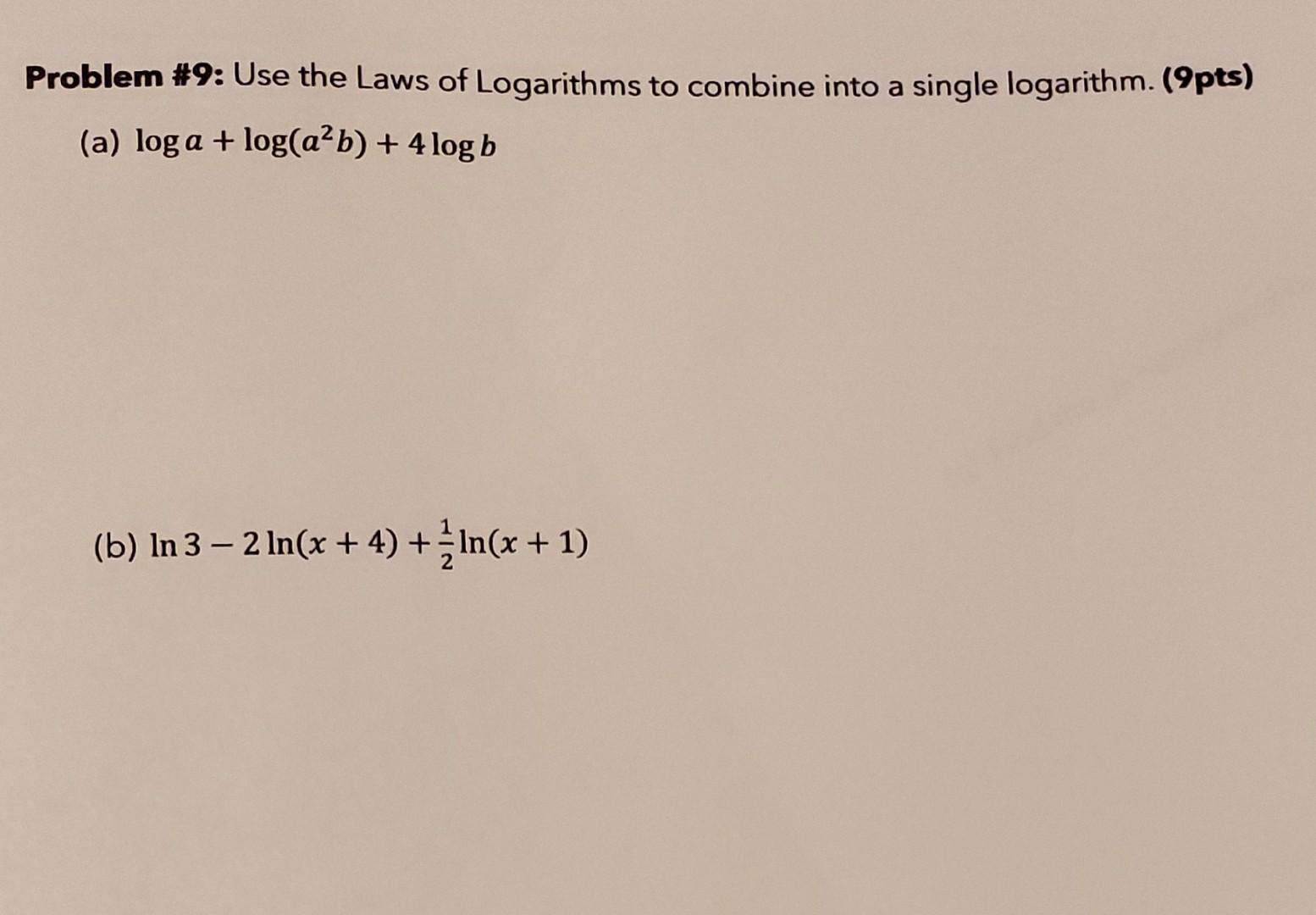 Solved Problem #9: Use the Laws of Logarithms to combine | Chegg.com