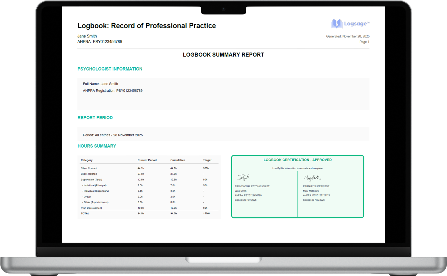 Digital Ahpra Logbook for Psychology Registrars — Logsage