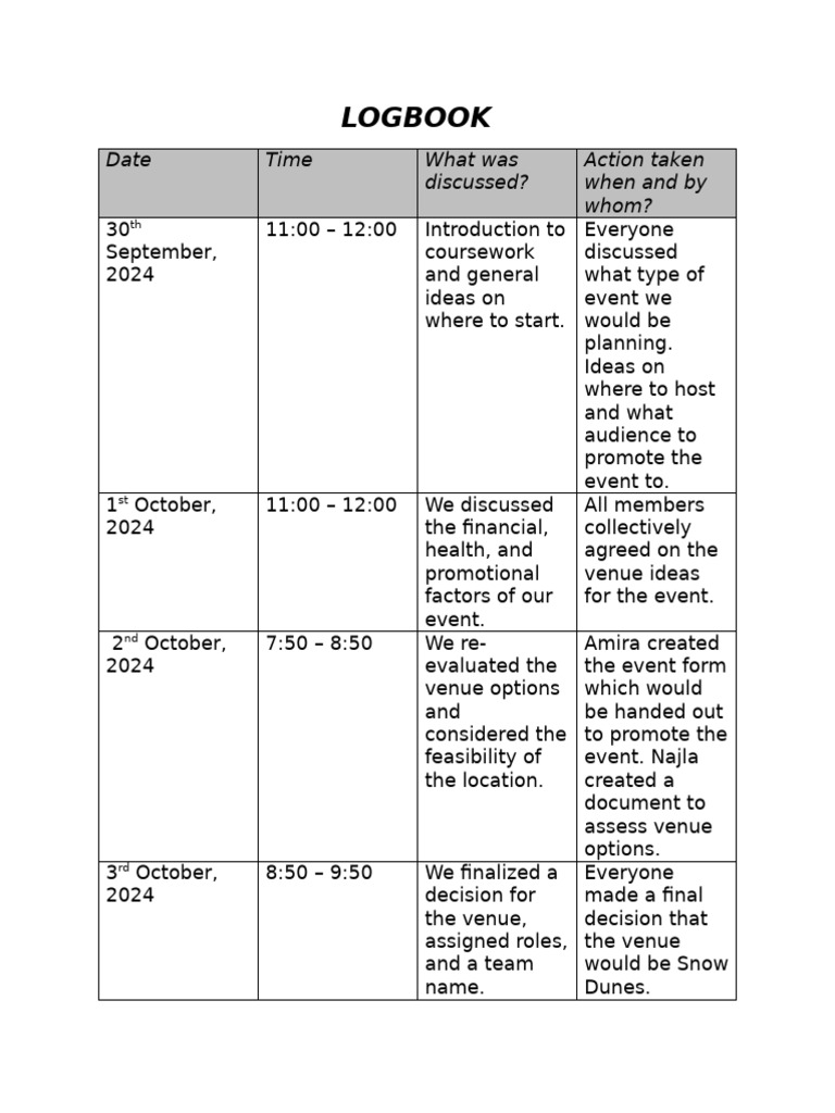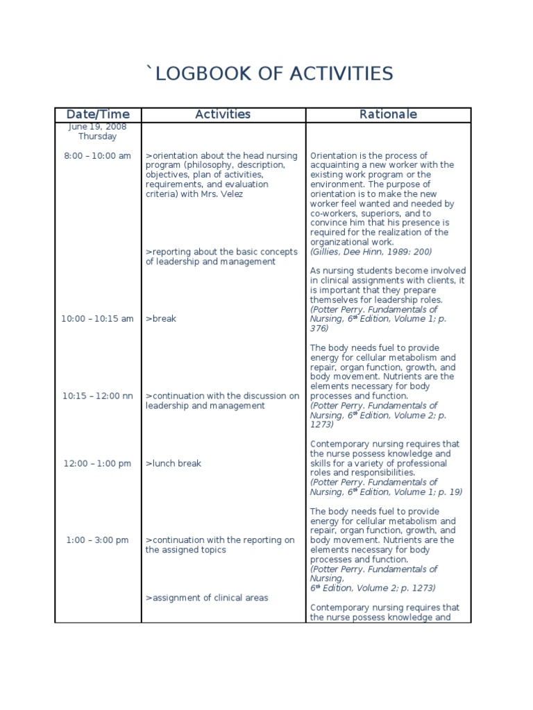Logbook Examples at Darla Adkins blog