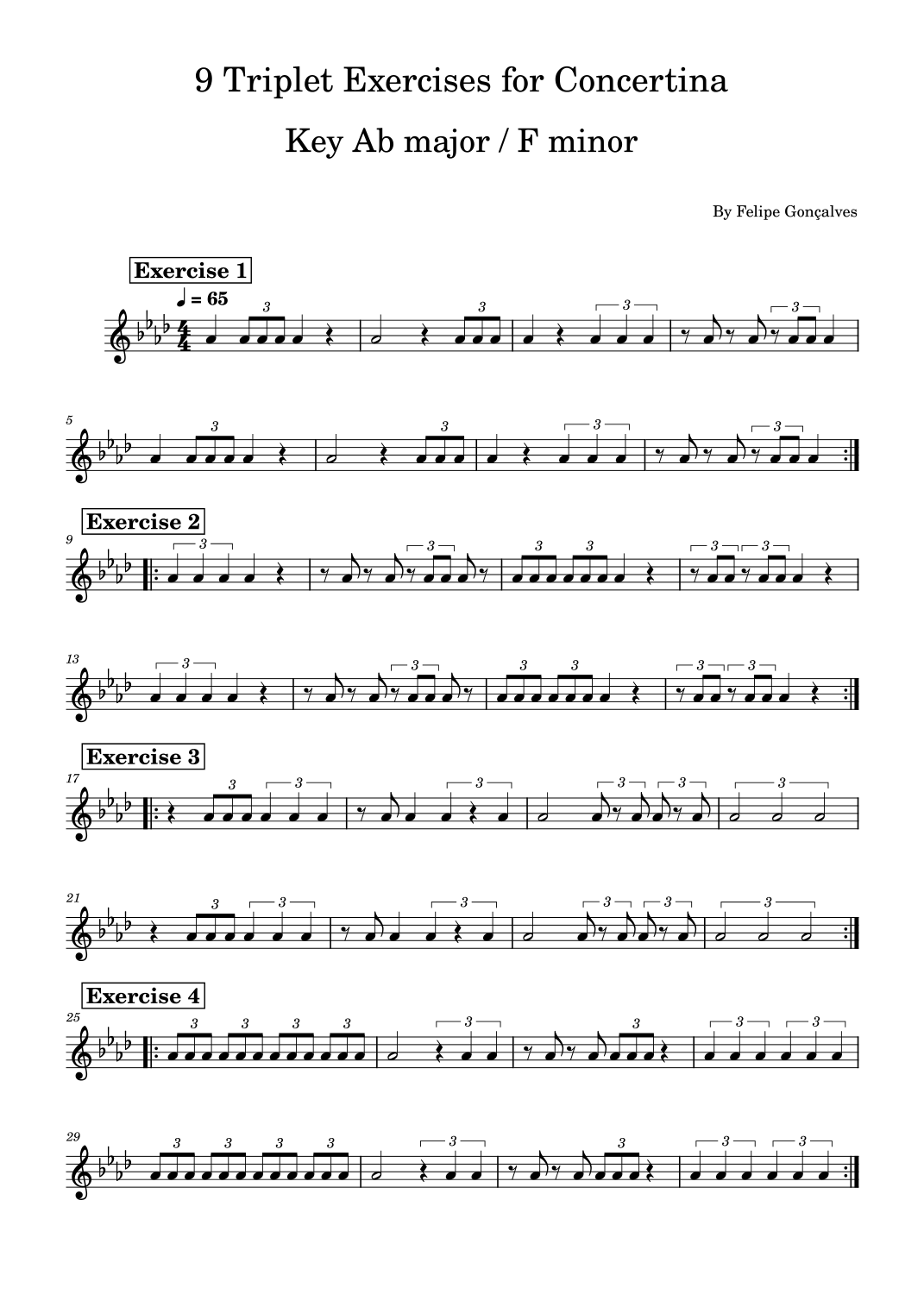9 Triplet Exercises for Concertina by Felipe Gonçalves Sheet Music for ...