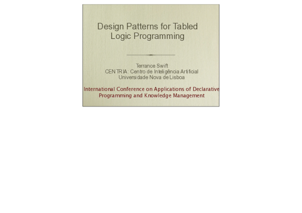 (PDF) Design Patterns for Tabled Logic Programming